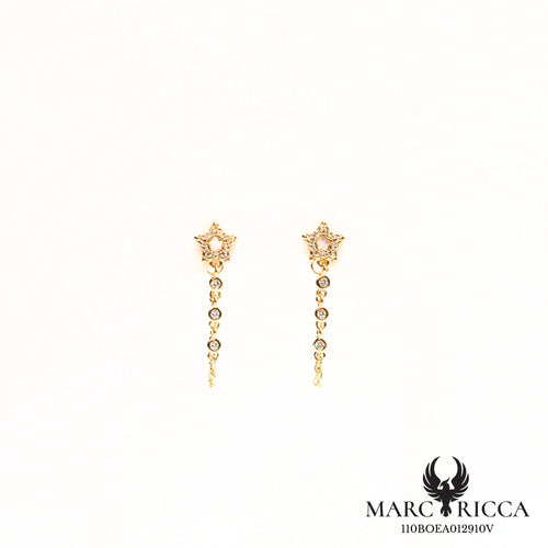 Boucles d'oreilles clous chaîne étoile zirconium nacre