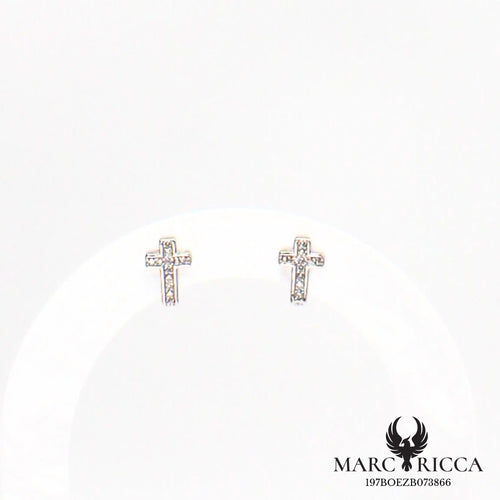 Boucles d'oreilles clous croix zirconium en argent